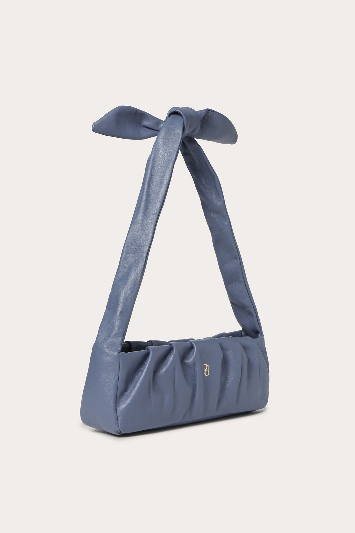 Yumuşak Napa deri, baget görünümlü, büzgülü, bağlamalı askı detaylı omuz çantası.