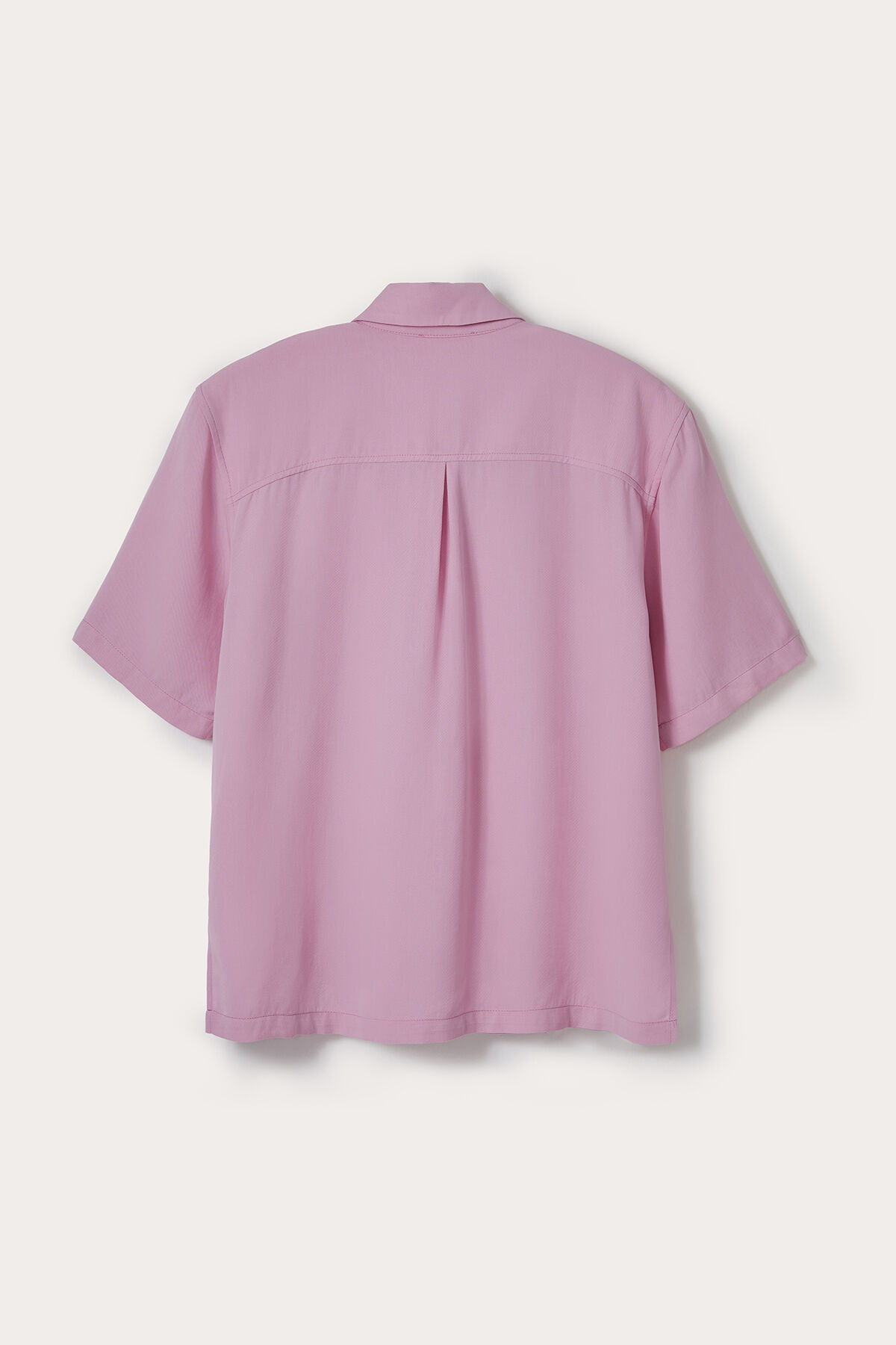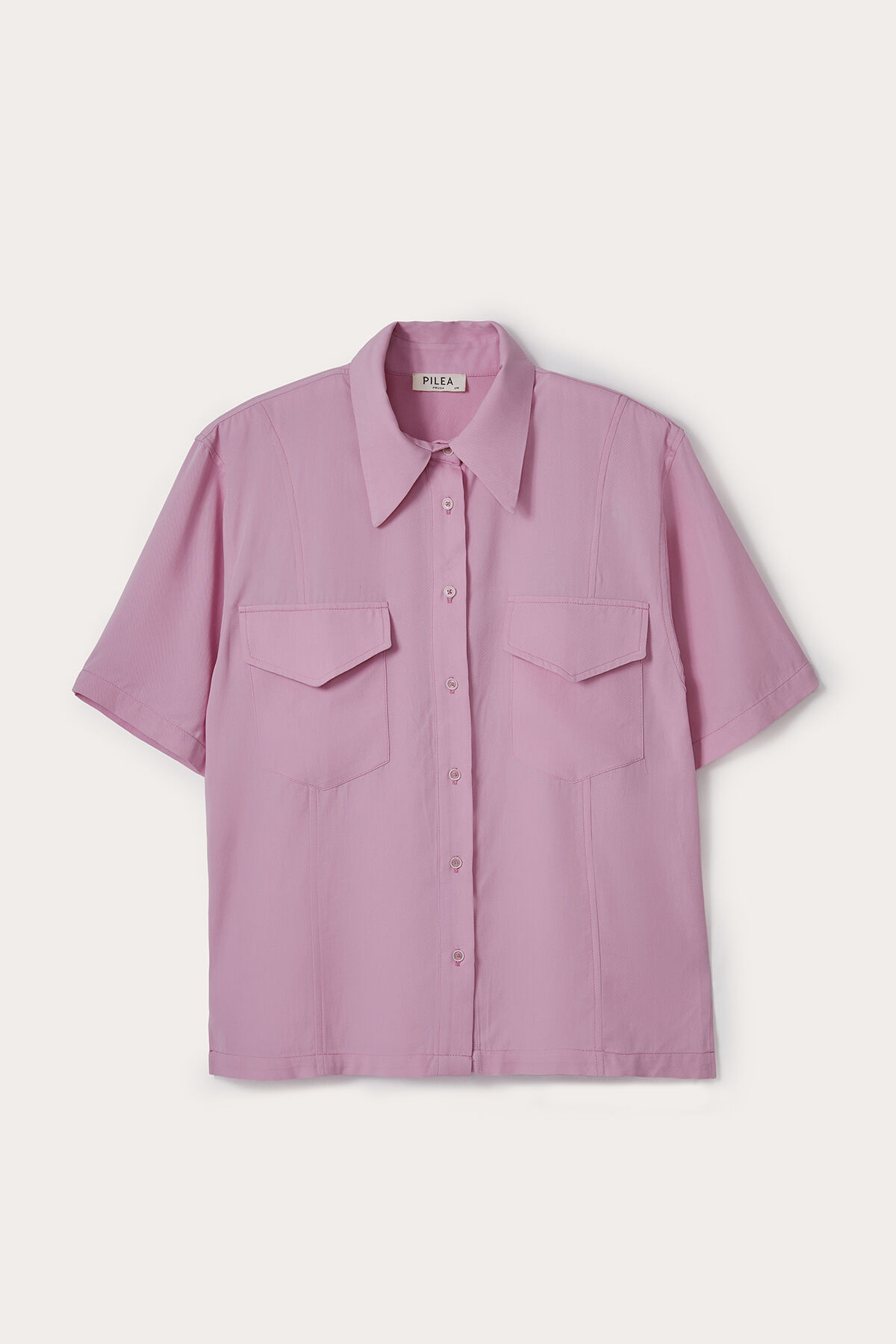 Blending modern style with comfort, this light pink shirt features short sleeves, a relaxed fit, and elegant topstitch details. The wide collar and front pocket add sophistication and functionality, while side slits enhance ease of movement. Crafted from breathable and soft 100% Tencel fabric, it's perfect for warm days and effortlessly chic everyday looks.