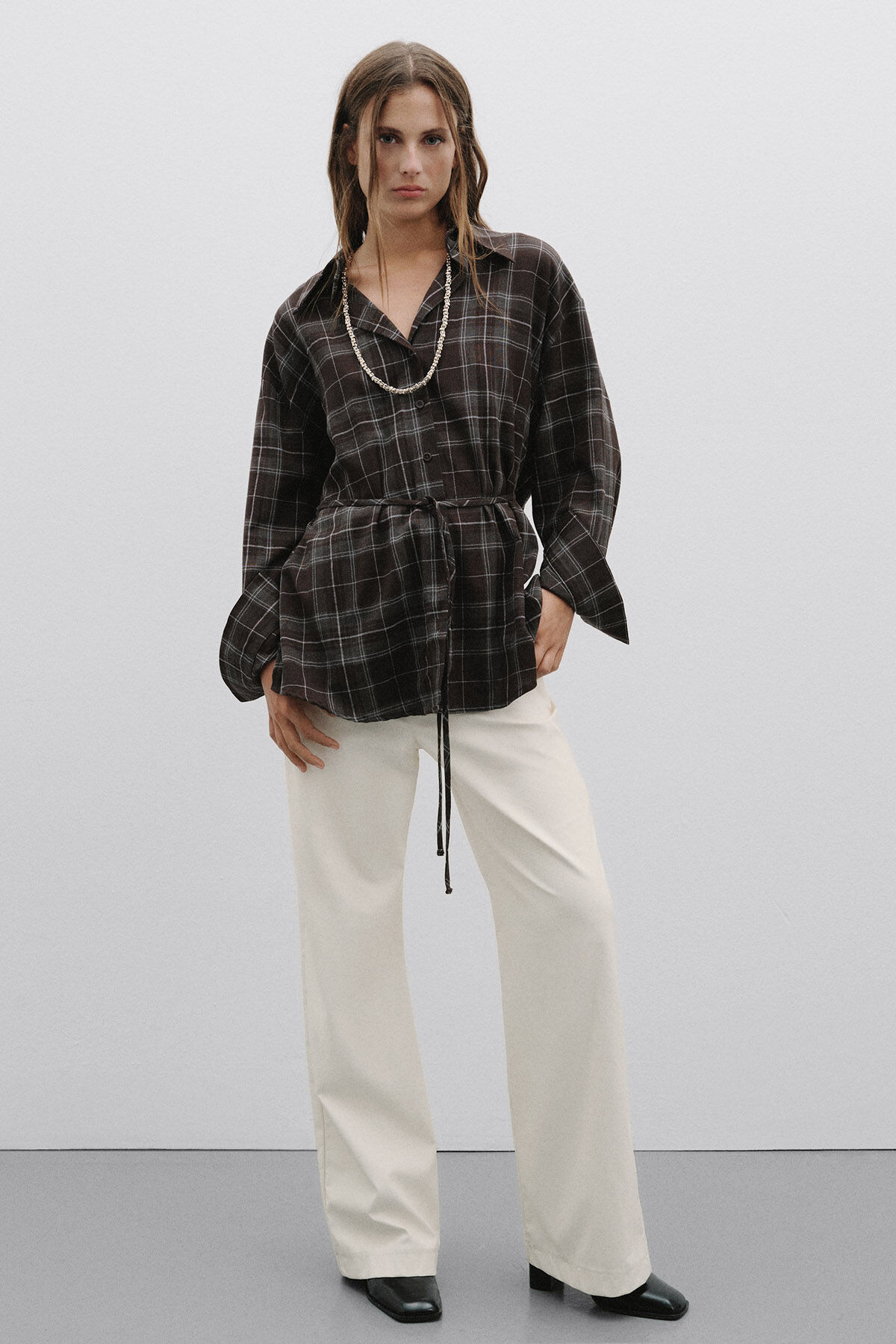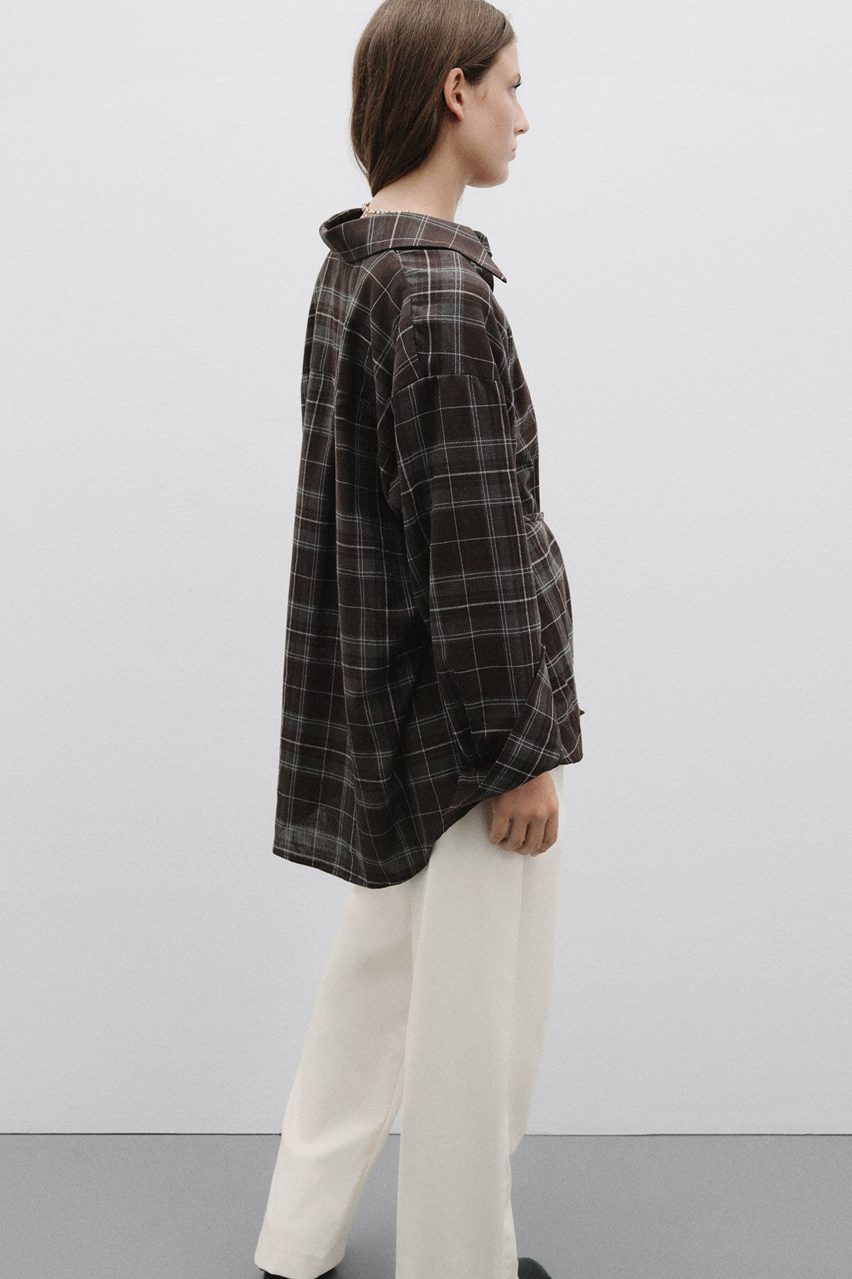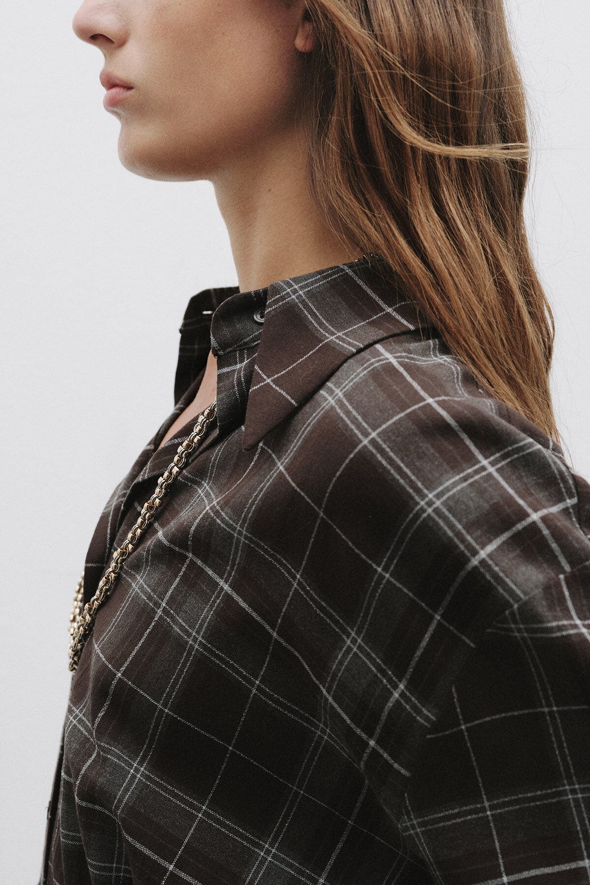 Notify me when its in stockBrown plaid long sleeve relaxed-fit shirt in cotton-viscose blend fabric