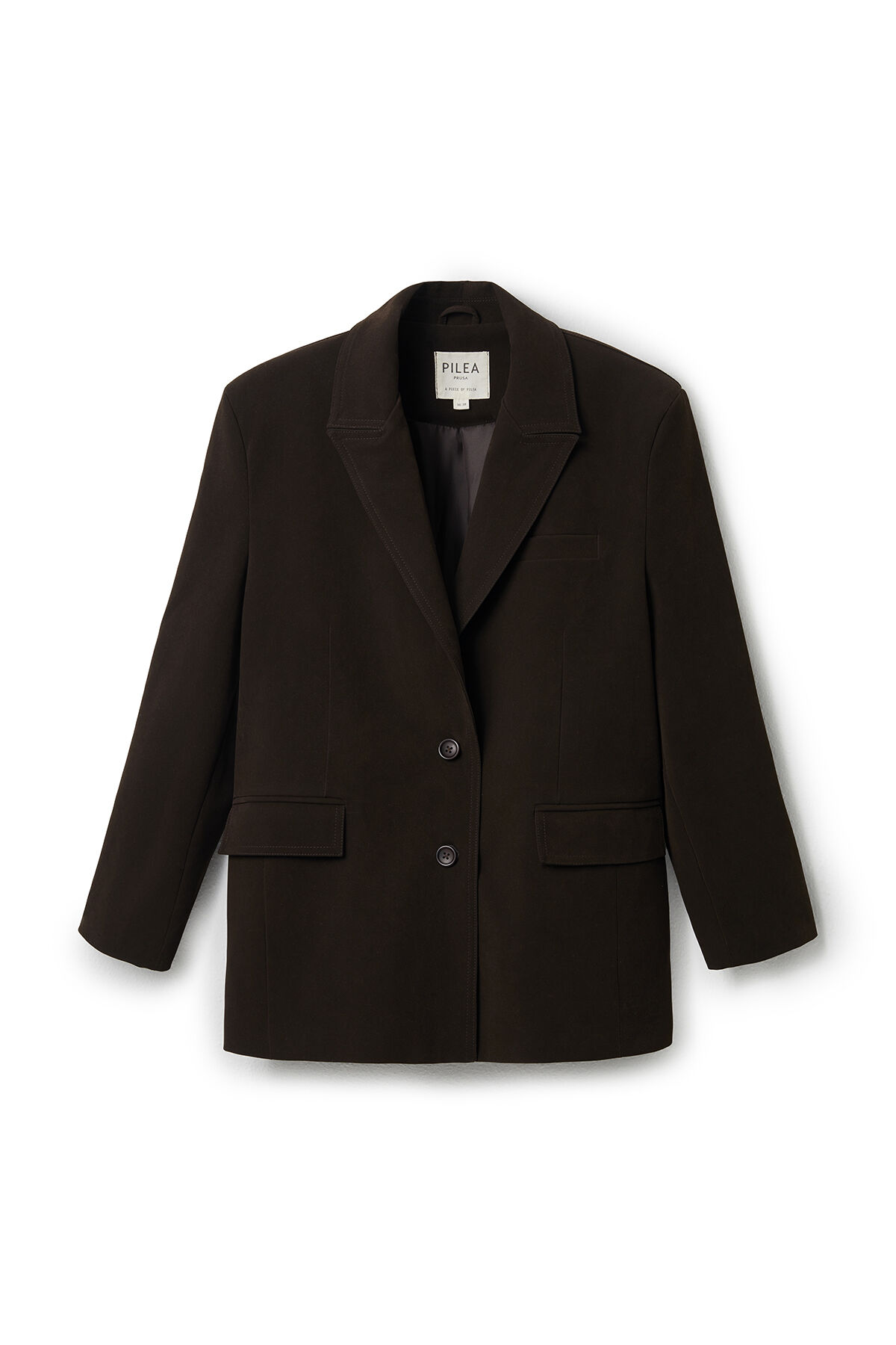 This elegant brown blazer combines a modern silhouette with the refined texture of faux suede. Designed with a relaxed wide fit and notch lapel, it offers effortless sophistication. The front button closure and practical pockets add both style and functionality, making it a versatile choice for both casual and formal looks.