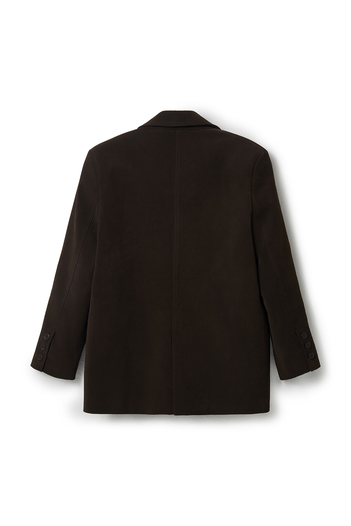 Notify me when its in stockBrown faux-suede wide-fit blazer jacket with notch lapel, front pockets, and button closure