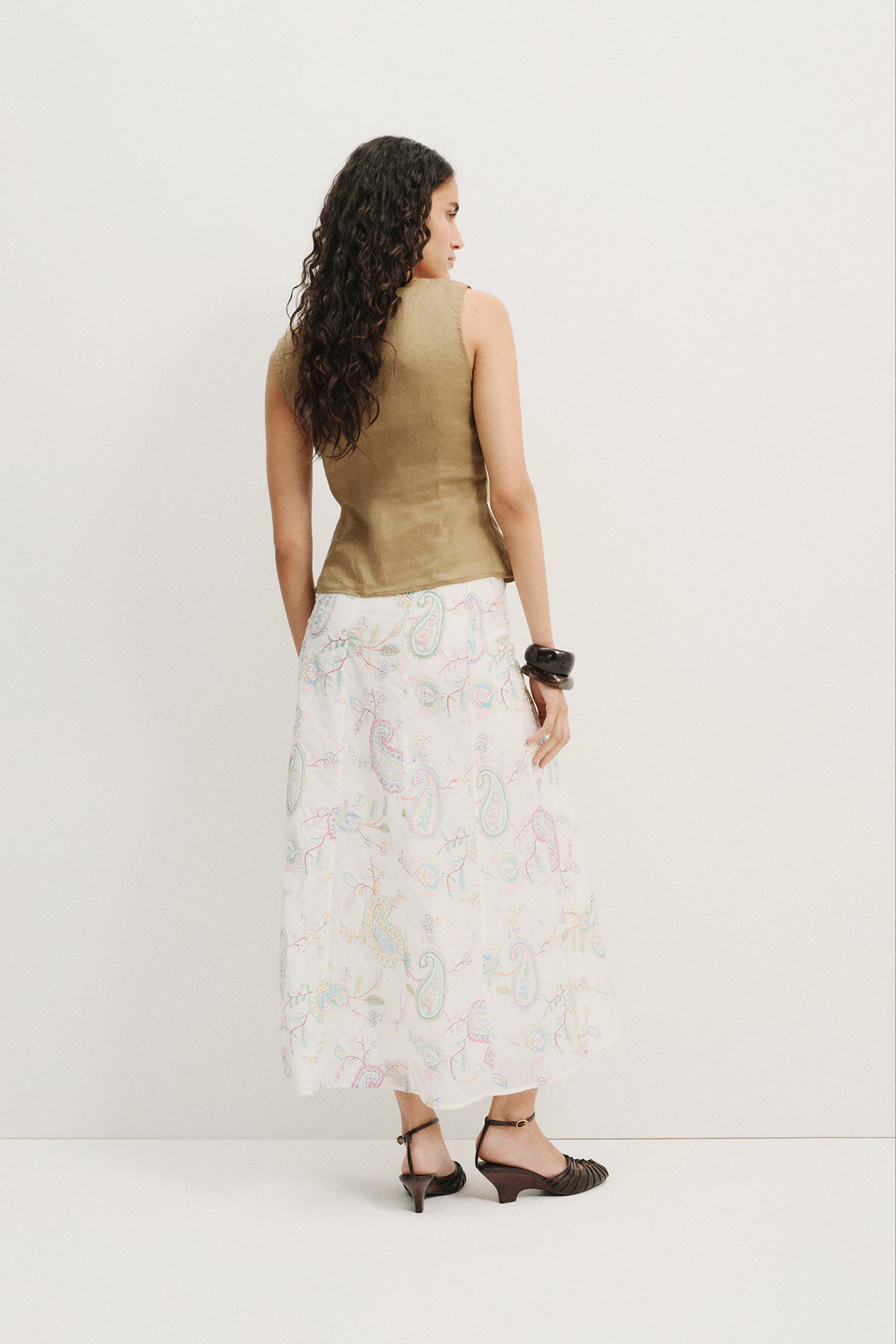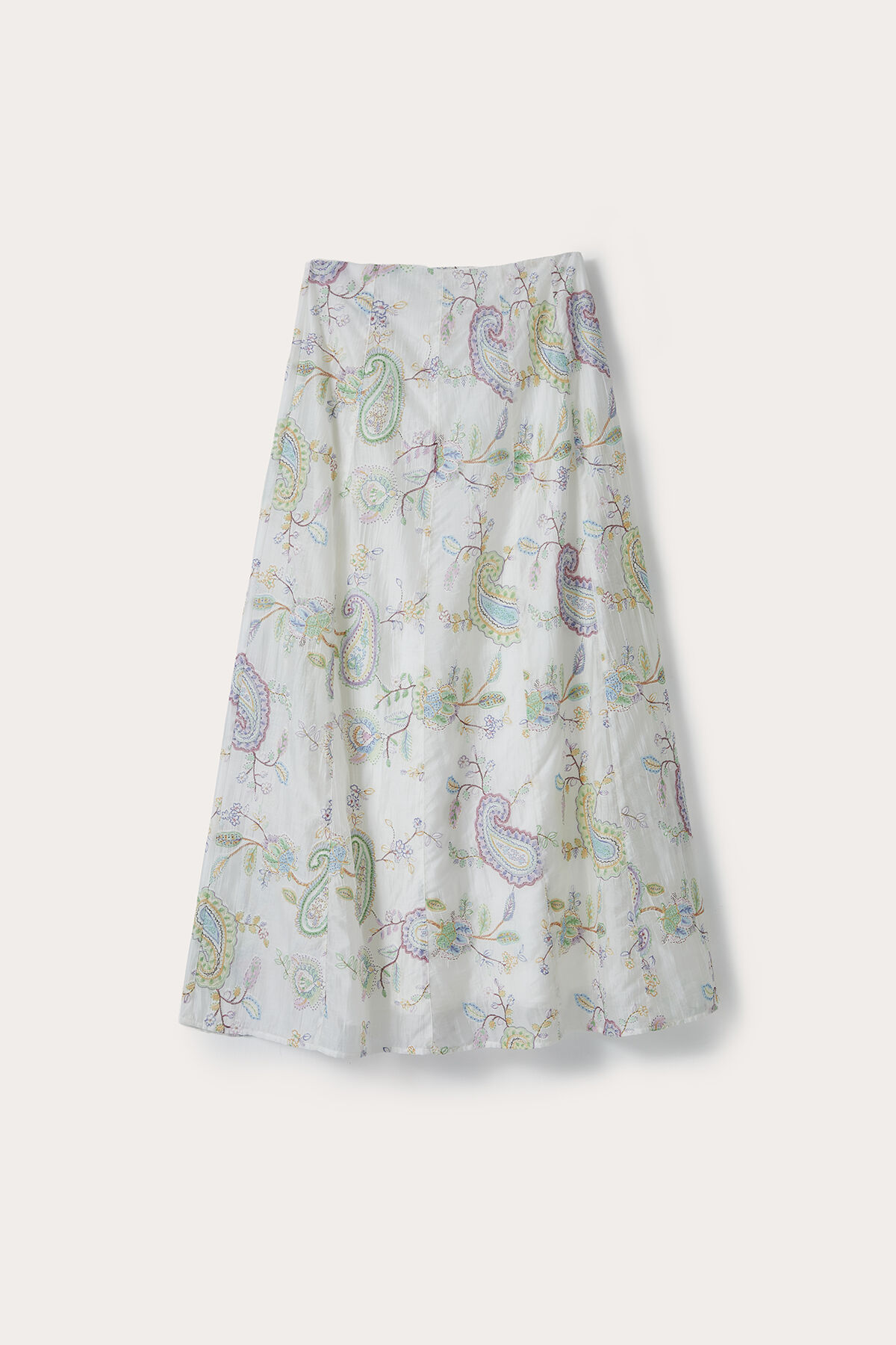 Gelince Haber VerRenkli şal desenli nakışlı parçalı model midi boy kendinden astarlı etek.