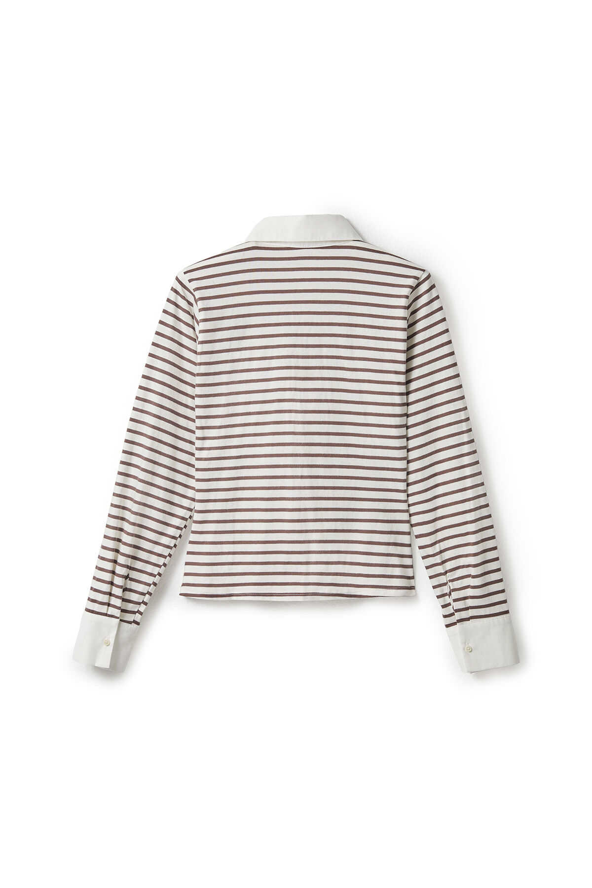 Klasik ve modern tasarımı bir araya getiren bu kahve-beyaz çizgili gömlek, şık görünümüyle dikkat çeker. Beyaz gömlek yaka, manşet ve pat detayları modele kontrast bir şıklık katarken, önden düğmeli yapısı pratik kullanım sunar. Fit kesim tasarımıyla vücuda oturan formu, hem günlük hem de ofis kombinlerine zarif bir dokunuş ekler. Yumuşak ve nefes alabilen %100 pamuk örme kumaşı sayesinde gün boyu konfor sağlar. Gardırobun zamansız parçalarından biri olarak şıklığı ve rahatlığı bir arada sunar.