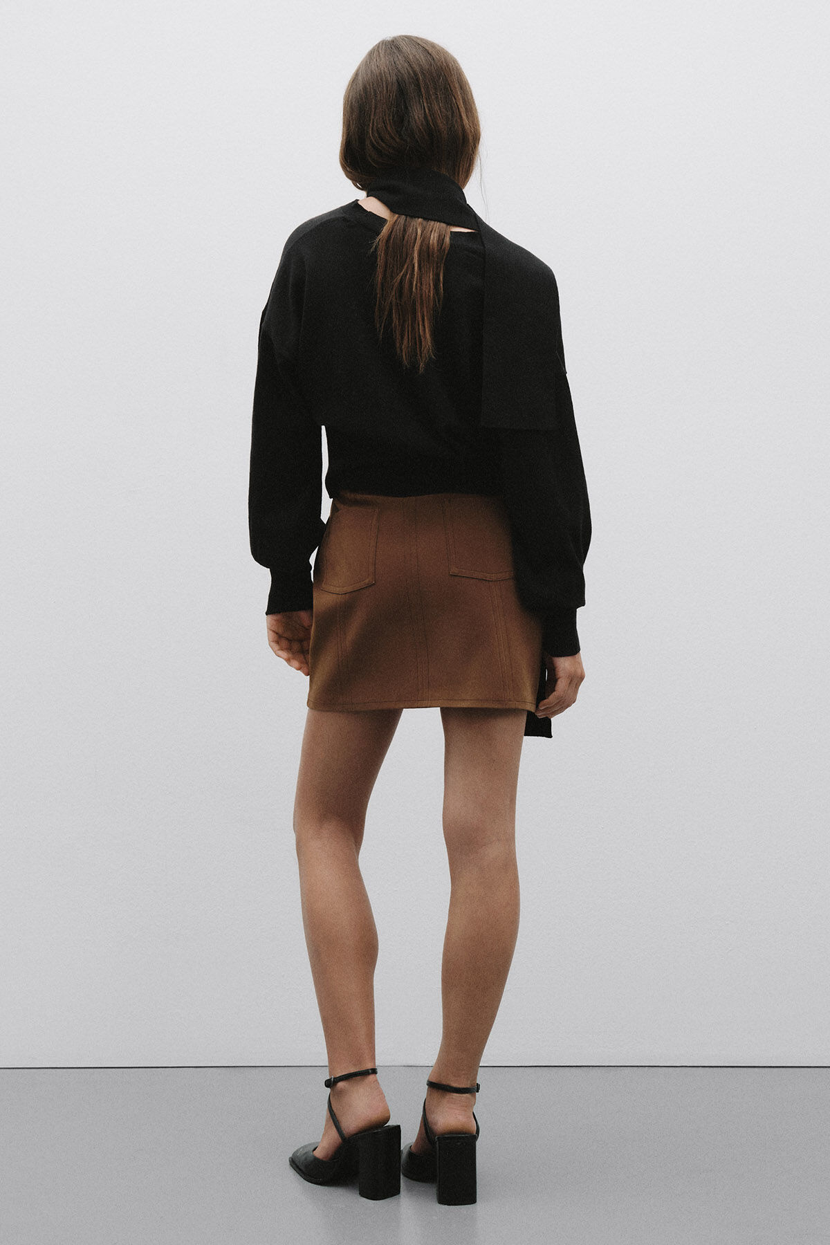 This elegant black cardigan stands out with its timeless silhouette, featuring a fitted waist and front button closure for a refined look. The long sleeves with narrow cuffs provide a sleek fit, while the attached scarf detail adds a sophisticated touch. Made from a soft viscose-blend knit fabric, it offers breathability, flexibility, and comfort. Perfect for both everyday elegance and more polished occasions.