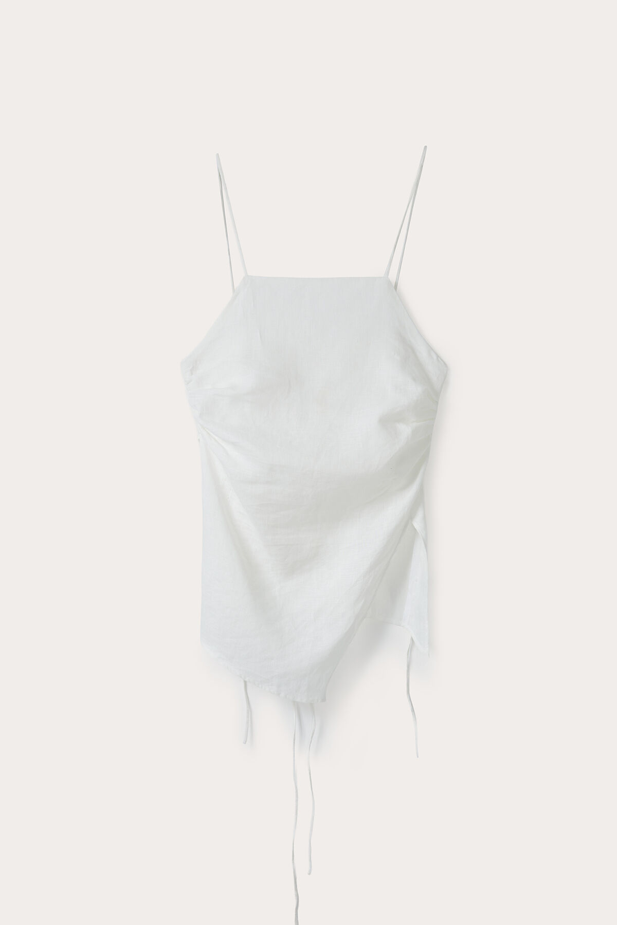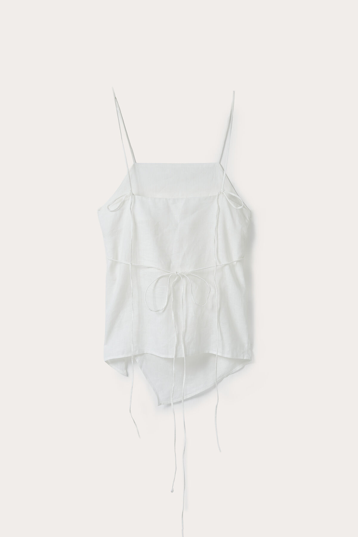 Notify me when its in stockEcru Spaghetti Strap Asymmetric Back-Tie Linen Blouse
