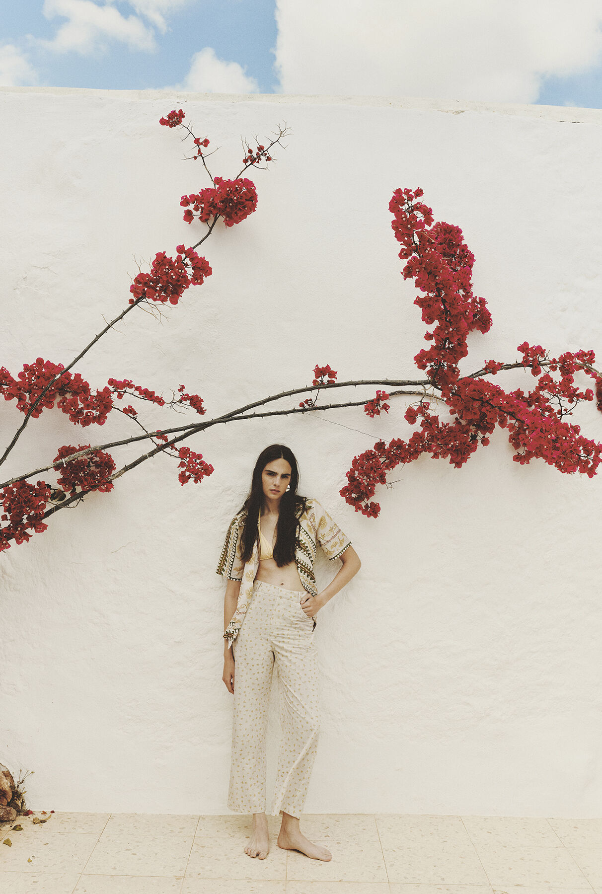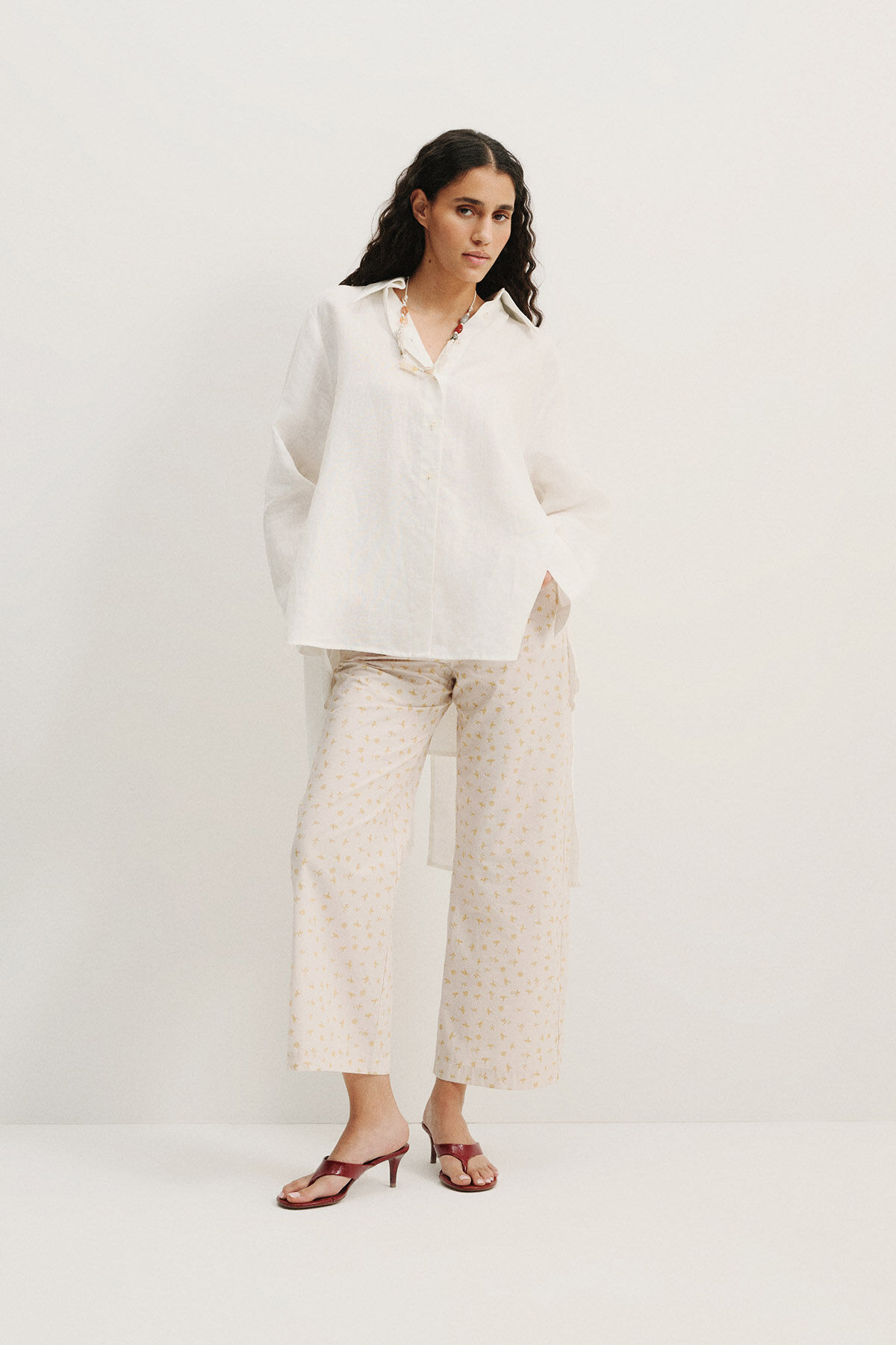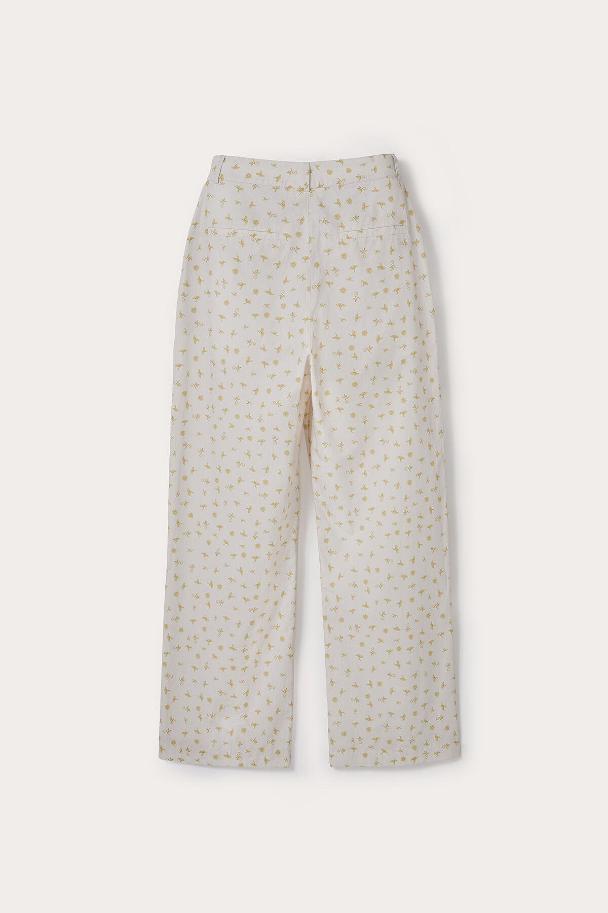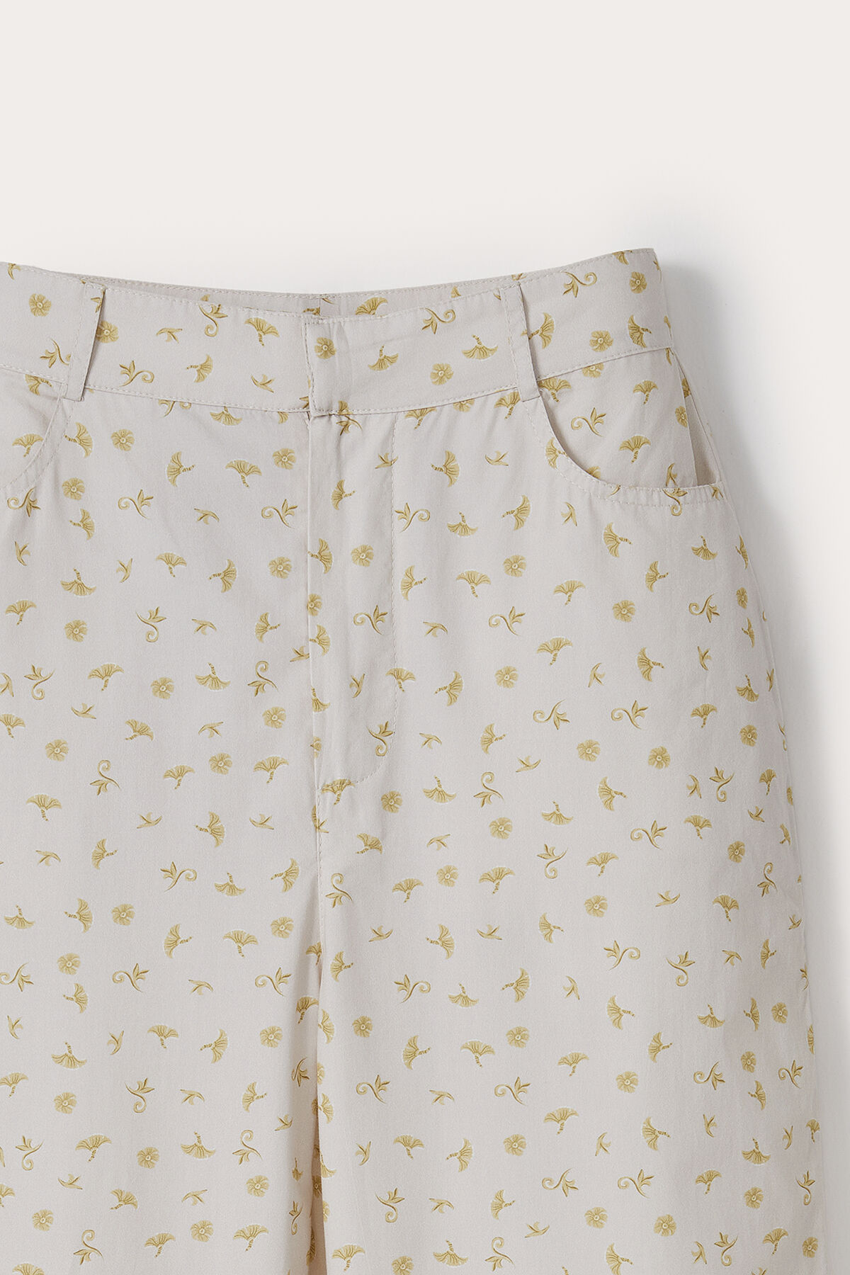 Soft and feminine, these cream-based pants with delicate yellow floral prints are perfect for warm weather styling. The wide-leg cut offers day-long comfort, while the belt loops and practical pockets add functionality. Made from 100% breathable cotton fabric, they provide a soft, natural feel. Ideal for casual outings, vacations, or everyday summer looks.