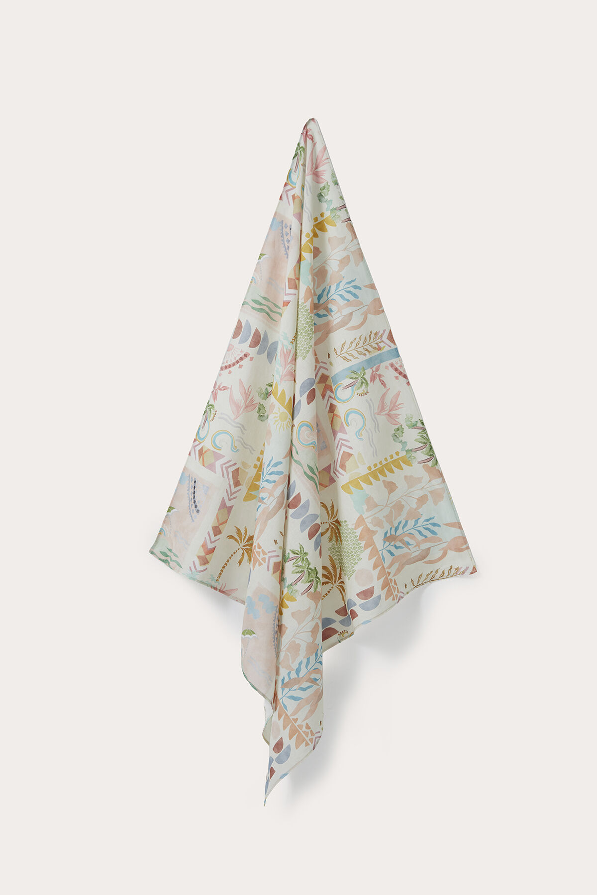 Gelince Haber VerTropik desenli soft renkli pamuk kumaştan fular.