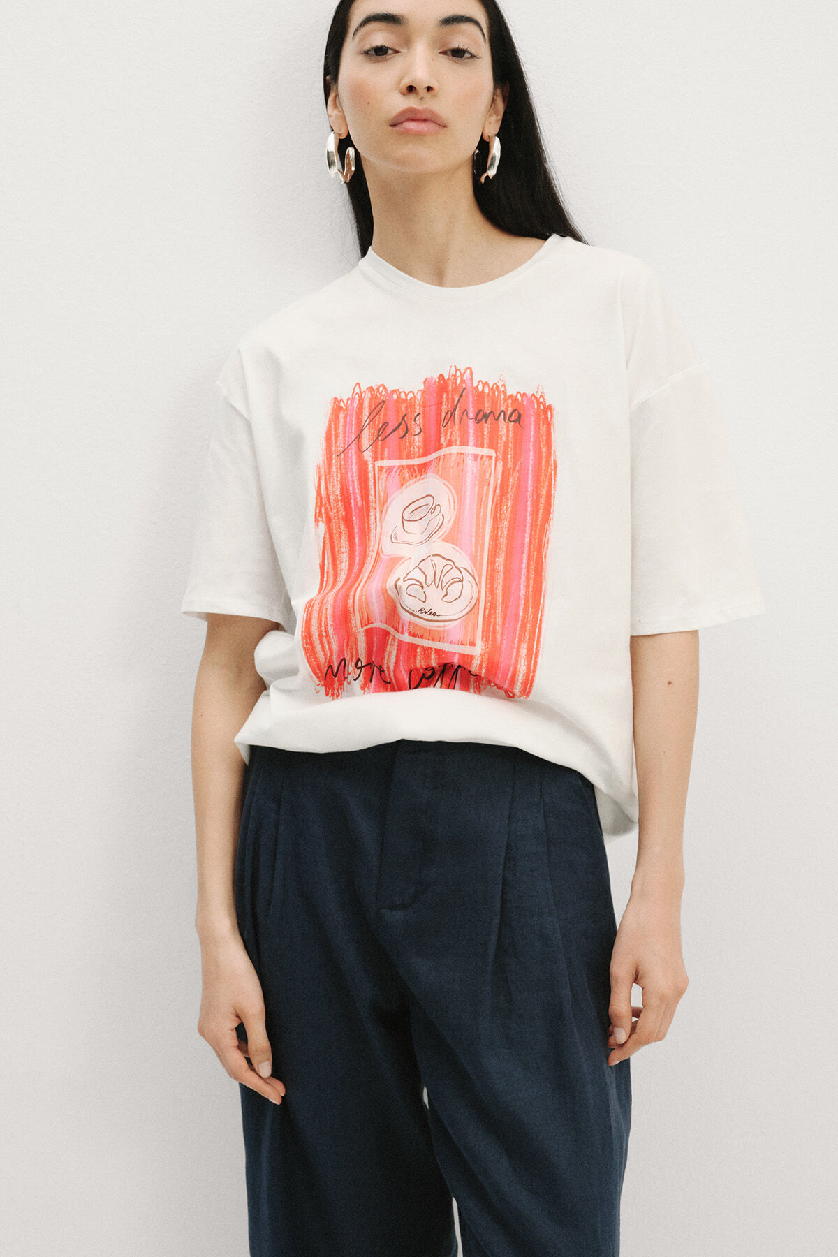 Combining comfort with a trendy look, this white oversized t-shirt is made from 100% cotton for breathable, all-day wear. The classic crew neck and short sleeves offer a relaxed fit, while the bold digital print on the front adds a stylish edge. Perfect for everyday outfits, this cotton t-shirt is a must-have piece for a casual and contemporary wardrobe.