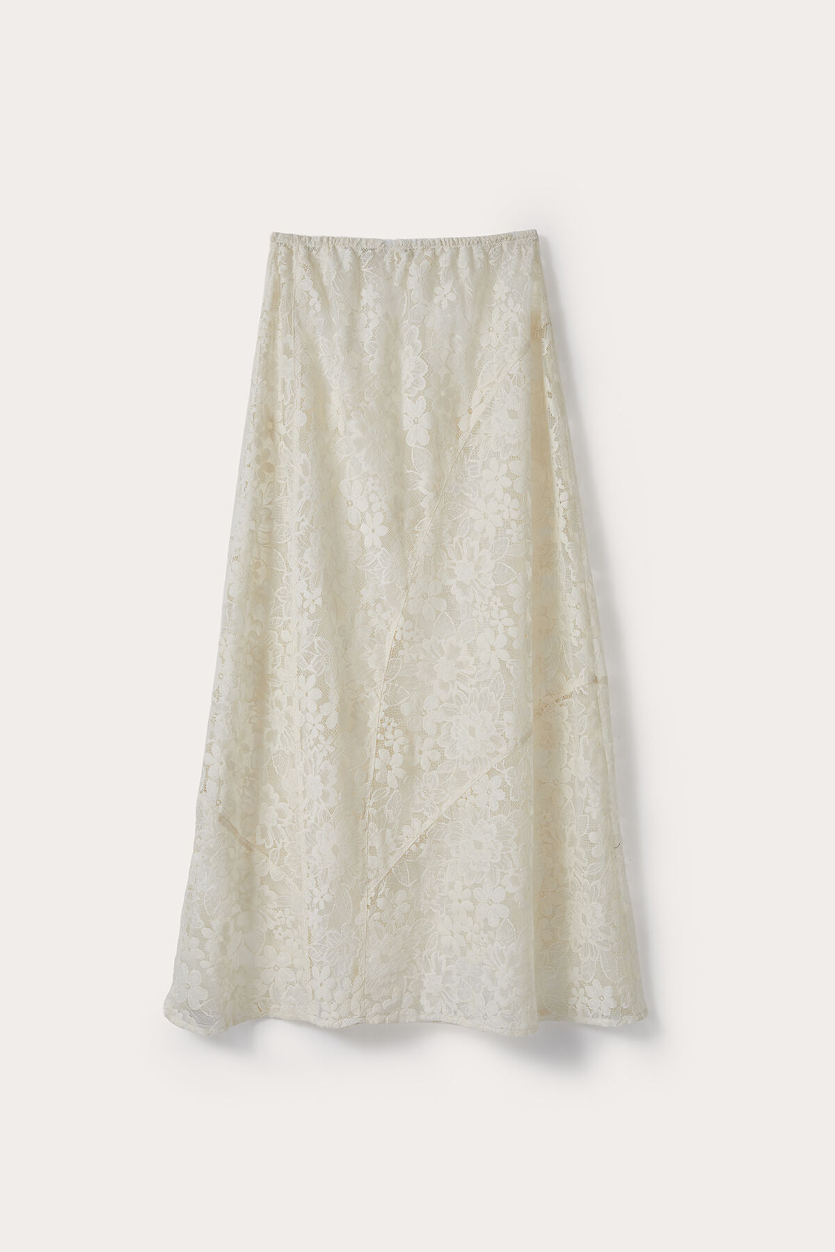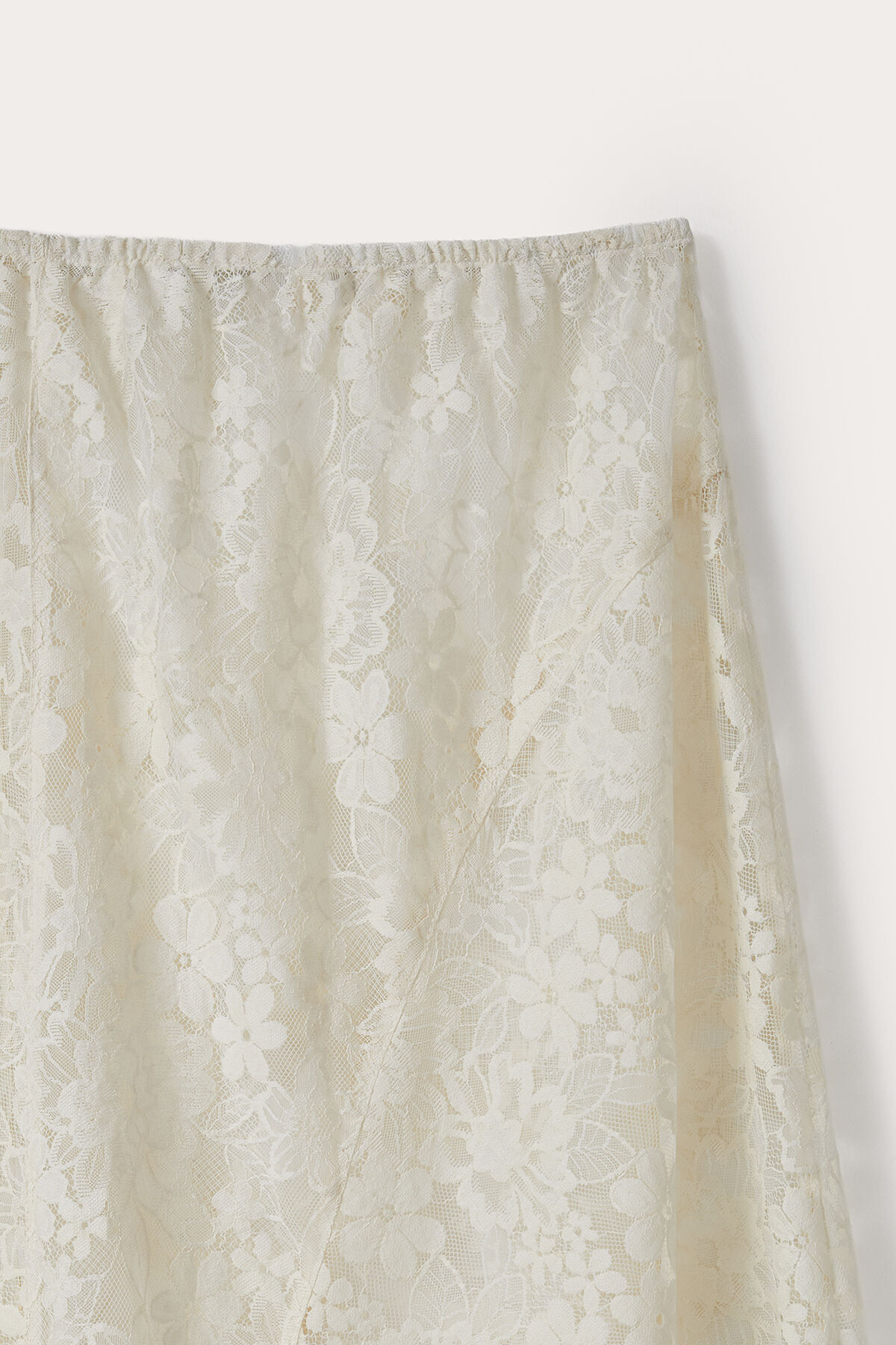 Gelince Haber VerParçalı model beli lastikli pamuk karışımlı tereyağı sarısı portatif astarlı midi boy dantel etek.