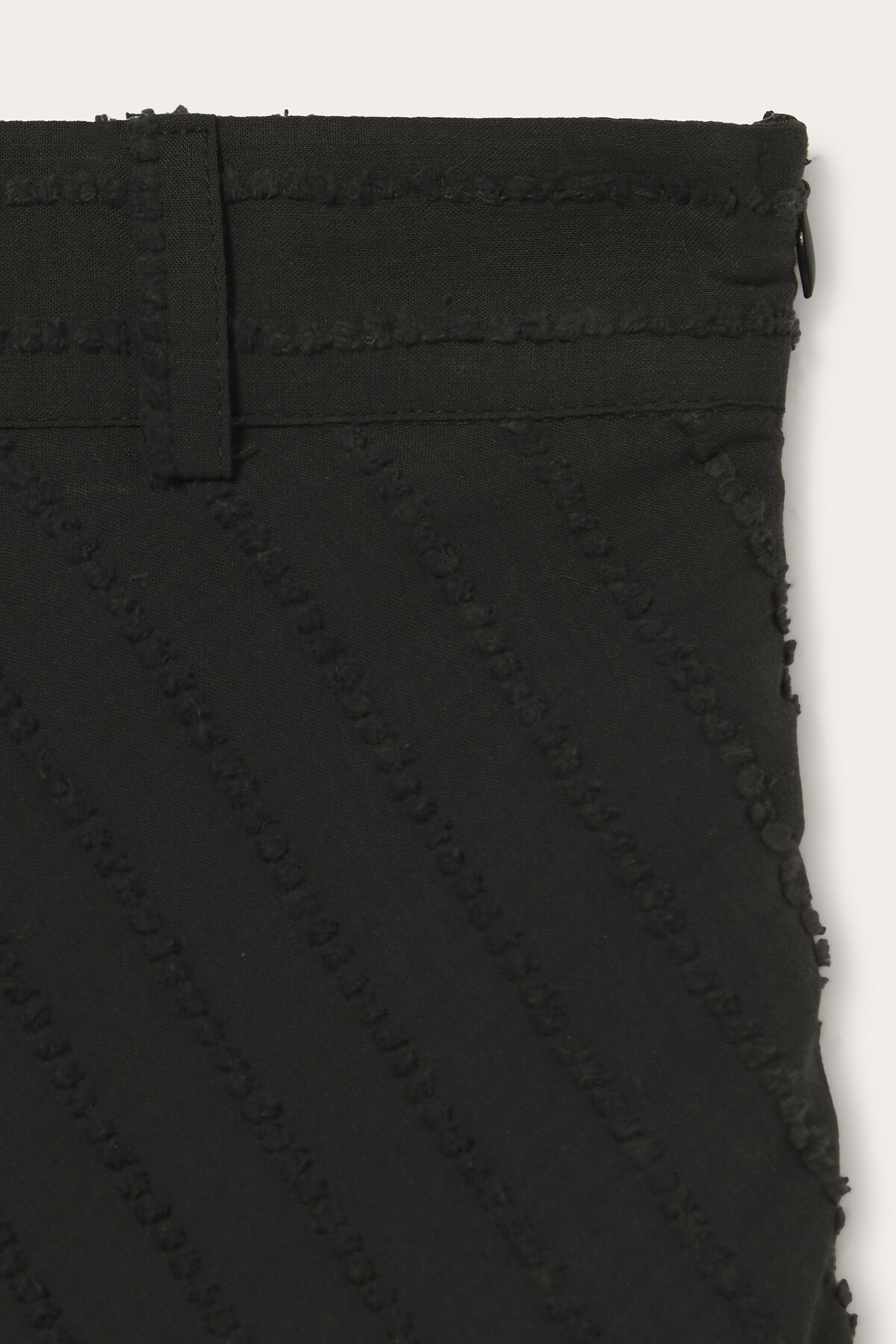 This elegant black skirt features a belted design that perfectly fits the waist. The flared A-line cut creates graceful movement, while the midi length offers both style and comfort. The self-lined voile adds volume to the skirt while providing ease of wear. The soft cotton fabric is breathable and comfortable, making it ideal for daily wear or special occasions. Perfect for those looking for a classic yet chic look.