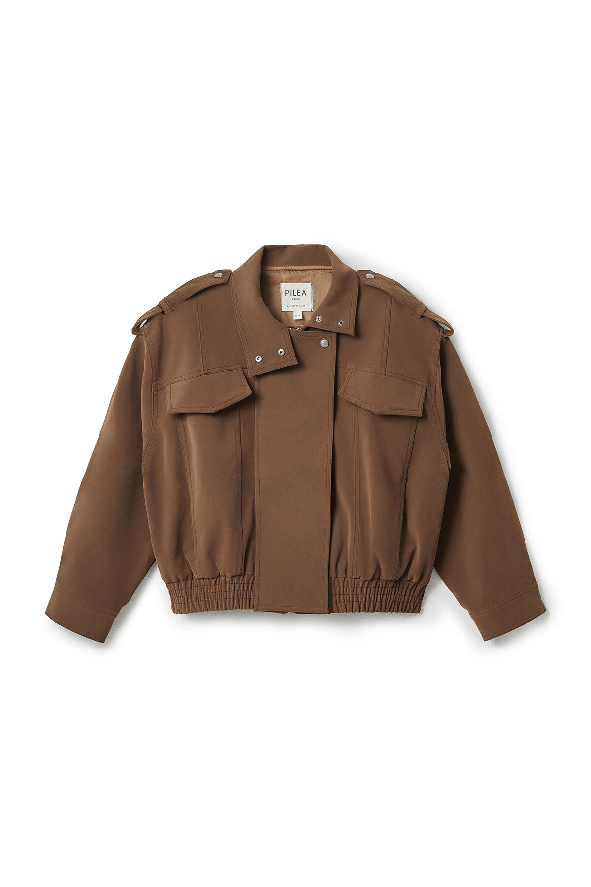 Notify me when its in stockCamel suede-effect bomber jacket with elasticated hem, front pockets, high collar, front zipper and concealed button closure under placket, relaxed fit